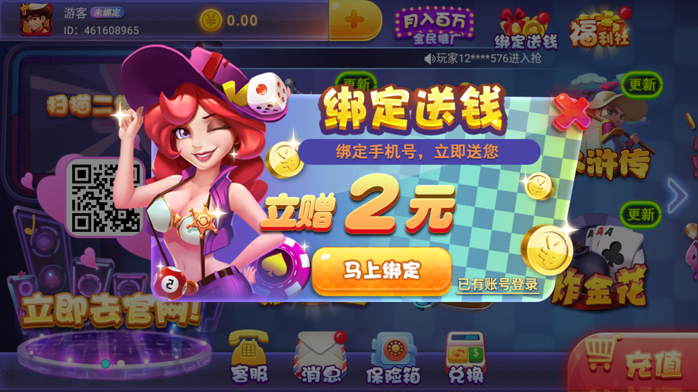 一款棋牌游戏,多年以来立志于为用户打造最安全放心的棋牌,高端的安全加密系统!多种不一样的棋牌游戏玩法可以体验到,丰富的竞技,还有很多的活动每天都可以参与!